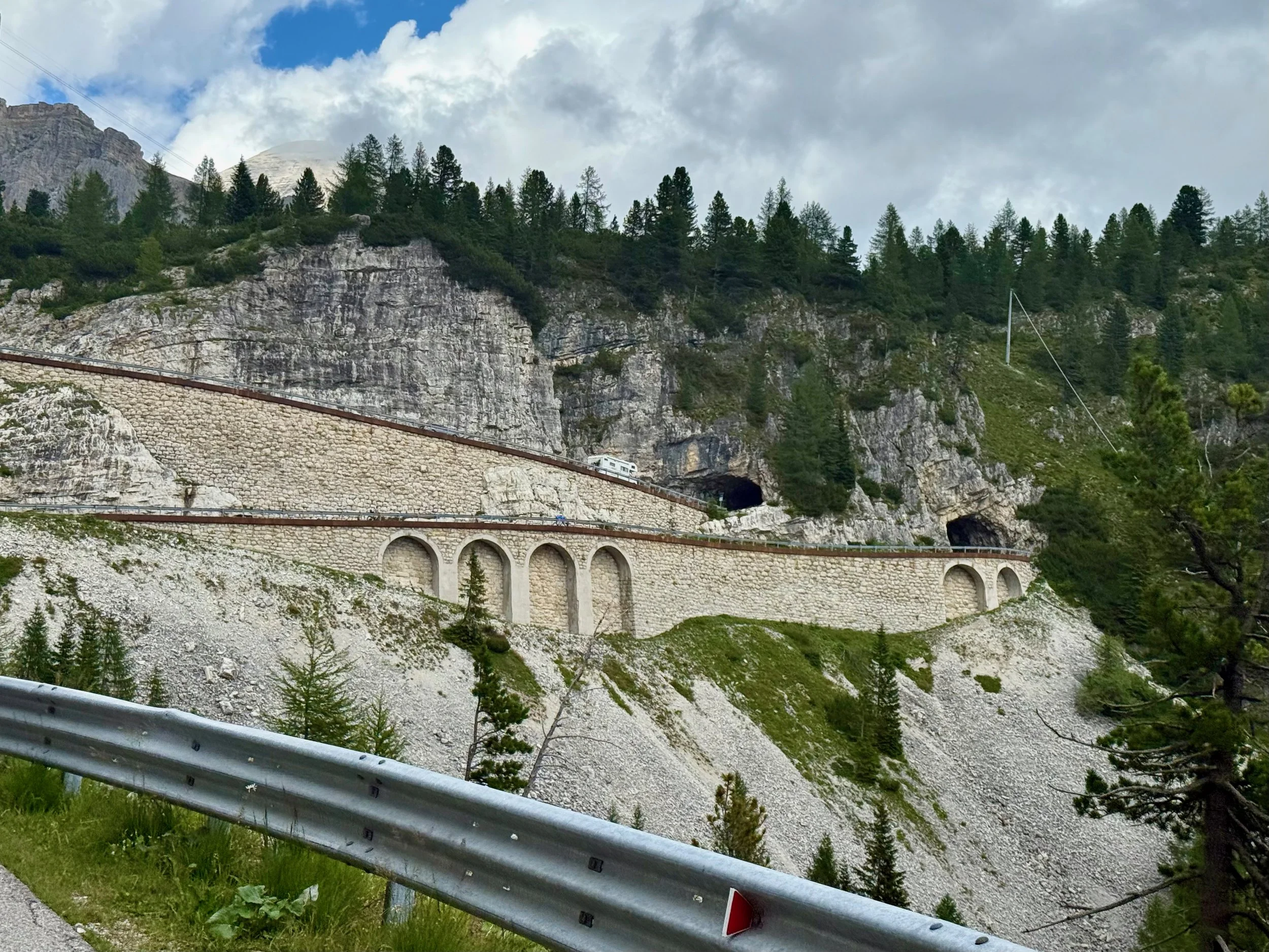 From Arabba, it was straight up the Pordoi. Thankfully for my stomach, it wasn’t all that steep. I maintained a good, sustainable pace and took in the sights. I also enjoyed the moment when a large group of pro Israel–Premier Tech teammates slowly passed me. I guess their best climbers were all off at the Tour de France…