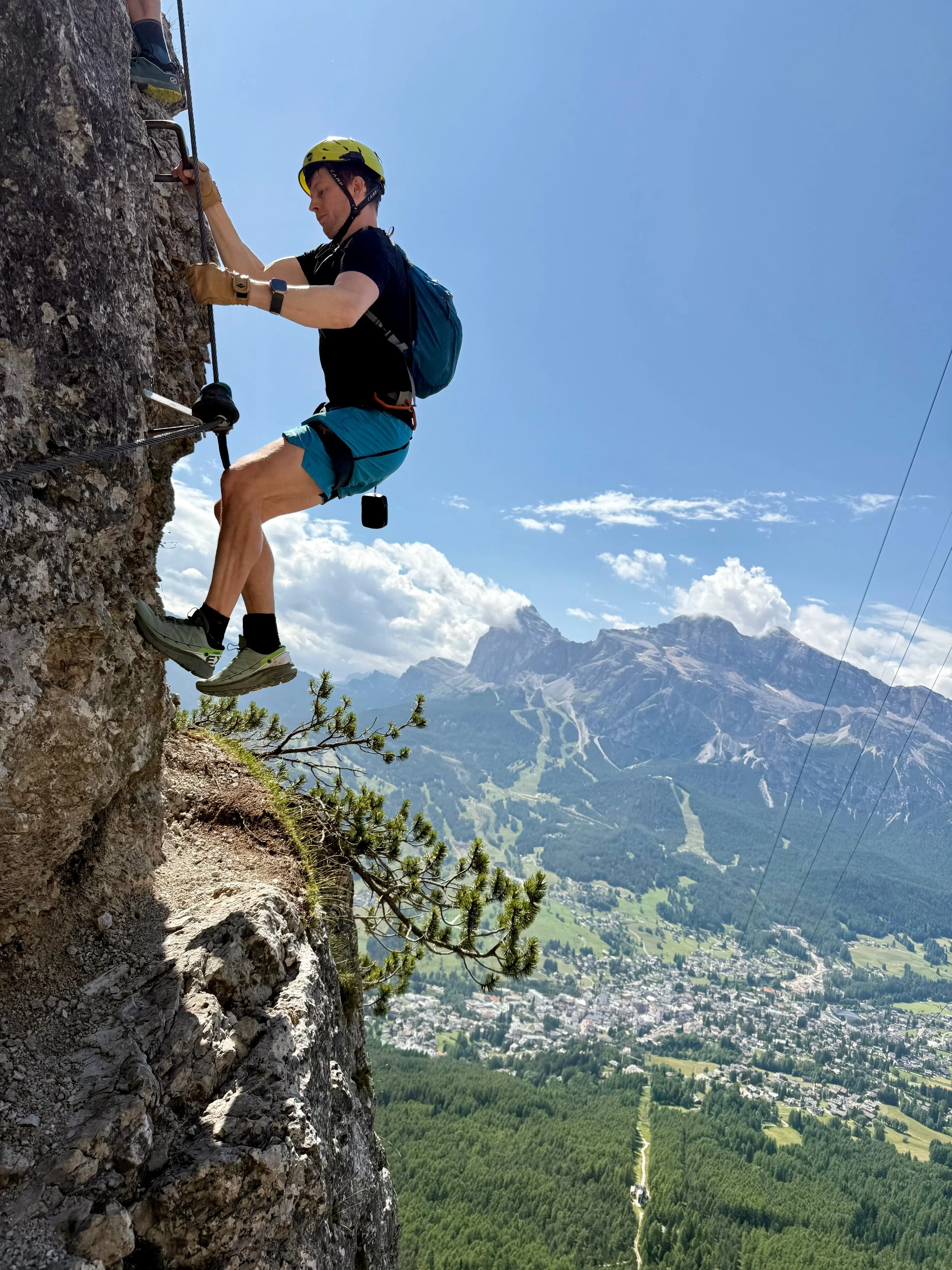 The route is steep from the start, with fun movement that was made more fun when ignoring the cable and stemples for hands and feet. There were a few airy sections with big views of the nearby peaks which made the route pretty memorable. We stayed close enough to each other during the route that we could maintain a conversation throughout, which was really fun.