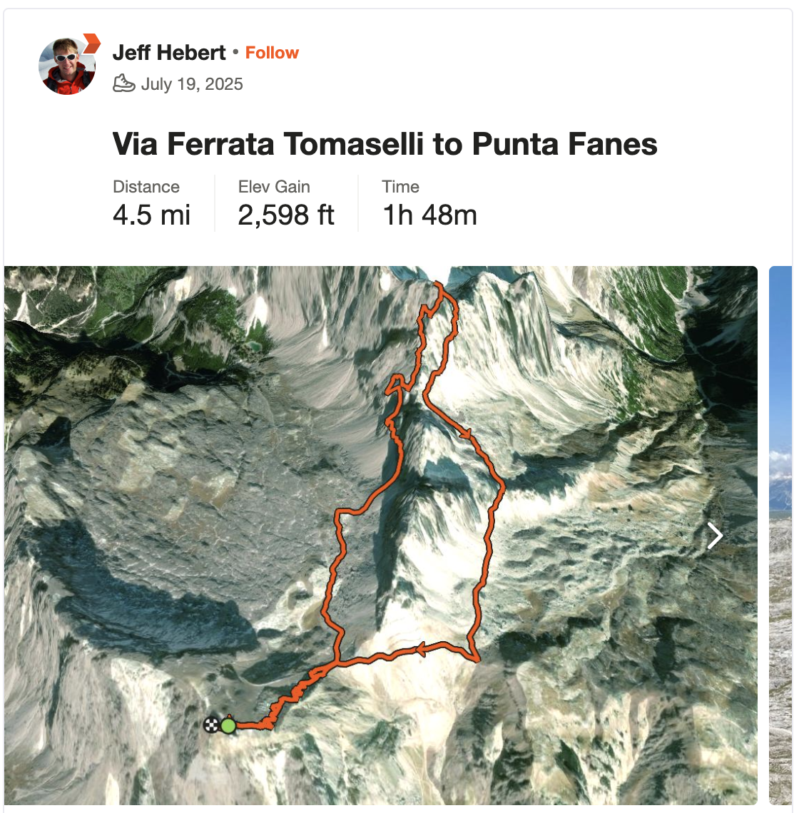 We decided to hike back up to the Lagazoui Hut at the end to enjoy lunch up there and ride the cable car back down. We made it there by 1:30pm, so about 3.5-hours hut to hut. A nice, warm meal with views was a perfect way to cap off the day and we were right to have not pushed our weather window since it started to rain just as we got back to the car.