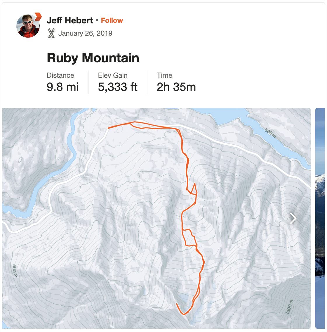 We took a direct line through the flat camp area while most folks were going high—this saved us some time. We were at the saddle at about 9:45am and switched to boots and crampons here as the ridge looked pretty icy and not worth skinning. This was the right call. I put my head down through the Roman Wall and got to the summit at 11:30am on the dot. I’d gone quickly enough that I decided to wait for Colin and Jen so we could ski down together, but got cold up there in increasing winds, so I skied down to the saddle to wait in a warmer spot, running into them on the way and letting them know.